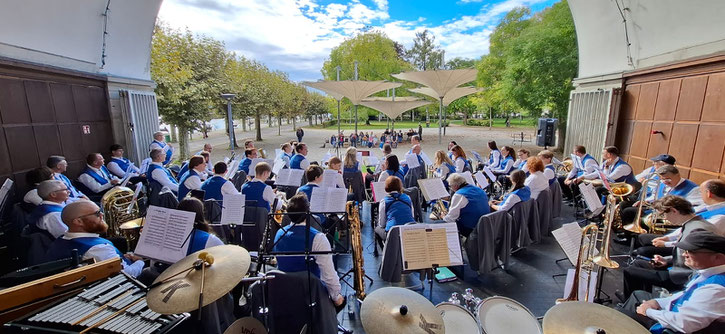 mehr Besucher versammelten sich im laufe des Konzerts, bei wunderschönem Oktoberwetter, um die Bühne. Nach einem ca. 2 stündigen Programm und dem Abbau und Verladen der Gesamten Instrumente in